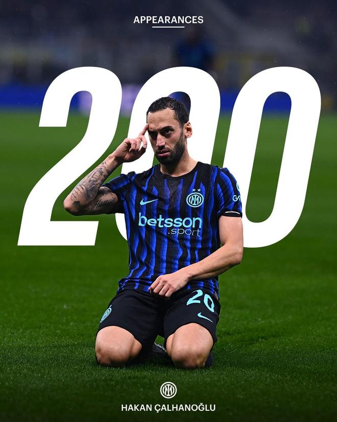 恰尔汗奥卢在欧冠联赛阶段第6轮主场0-1负于利物浦的比赛当中首发出场,从而迎来了自己国际米兰生涯的200场里程碑。