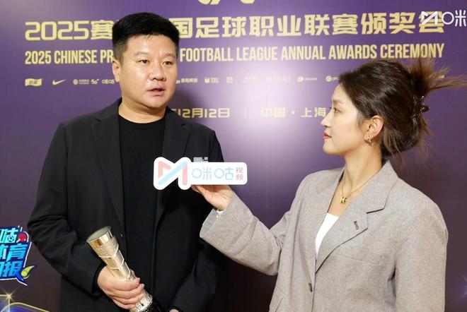 12月12日,中国足球职业联赛颁奖礼上,李金羽荣获中甲最佳教练,他在现场接受了采访。