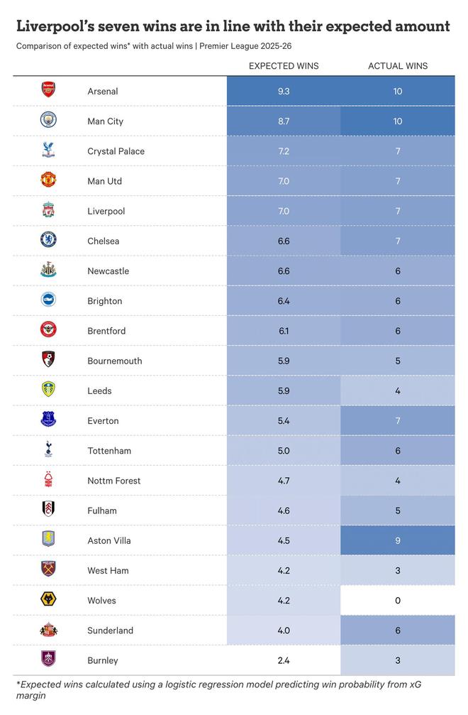 乍一看,利物浦似乎是一支成绩应该好得多的球队。他们能将困境仅仅归咎于运气不佳吗?
