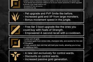 中路获得一个免费的3阶鞋子升级,类似之前抢占先机提供的可购买升级。此外,中路还会获得强化的4秒回城技能(有冷却时间)。部分3阶鞋子有所调整,但大部分与目前的版本类似。